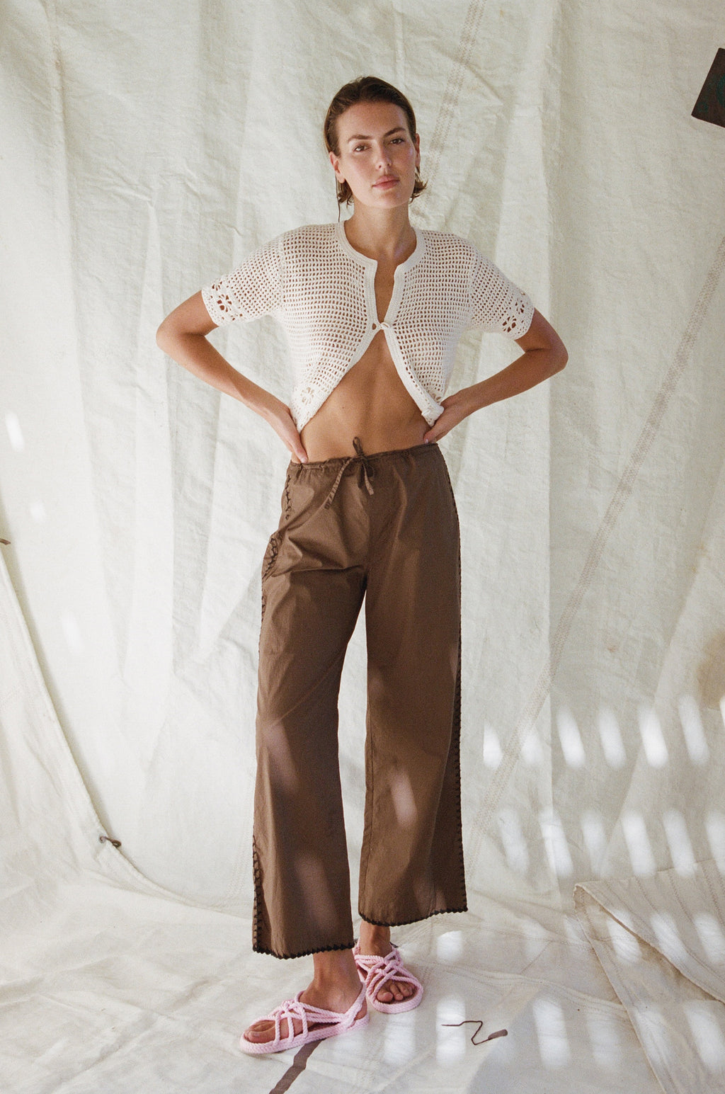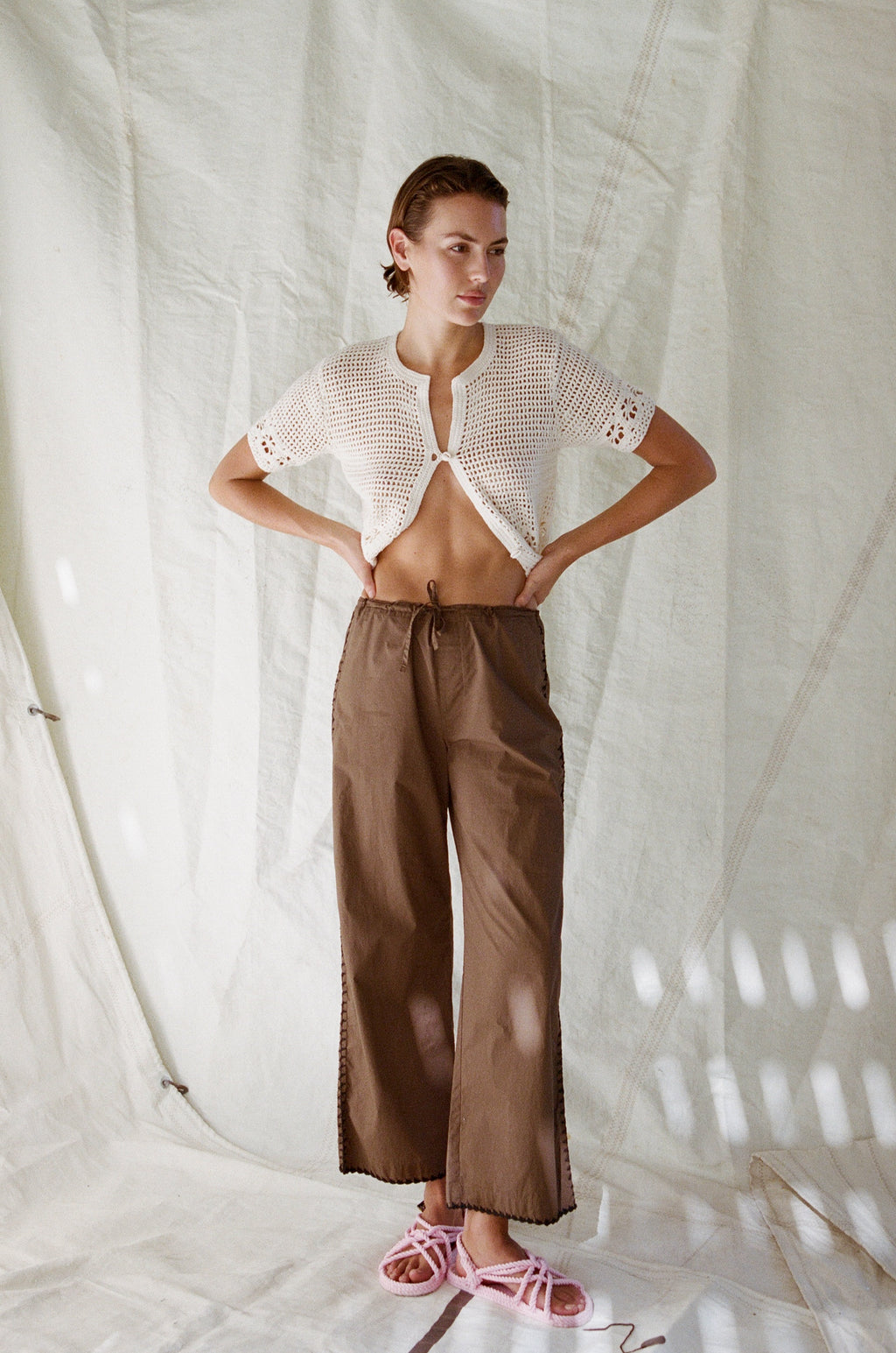 Crafted from breathable 100% organic cotton, the Casa Pant is lightweight yet substantial, making it ideal for beach-to-bar dressing. Handwoven crochet detailing along the side seams adds a considered artisanal touch—subtle, elevated, and uniquely Terry Puesto. Style with the Casa Shirt for a tonal, sun-faded set, or wear simply on its own -barefoot, undone and over swimmers.