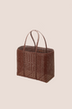 Handwoven from recycled plastic (polyethylene HDPE), from Palorosa's tote bag collection the 'Basket Tote Bag' features a woven diamond pattern. Unlined, hand-sewn leather brand tag with a cream woven bottom.