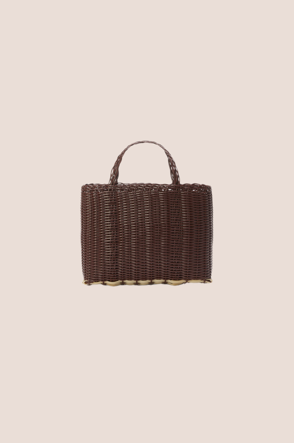 Handwoven from recycled plastic (polyethylene HDPE), from Palorosa's tote bag collection the 'Basket Tote Bag' features a woven diamond pattern. Unlined, hand-sewn leather brand tag with a cream woven bottom.